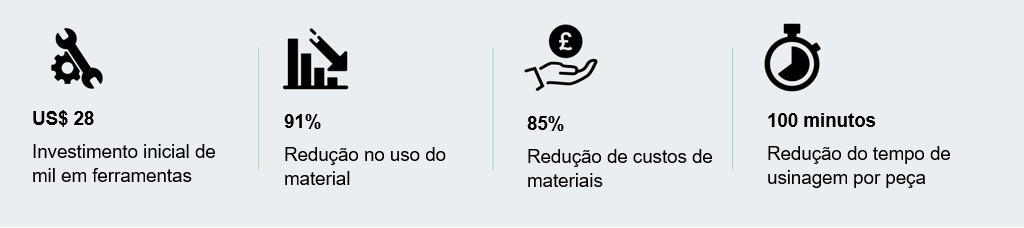 - Tempo de usinagem reduzido em 100 minutos por peça